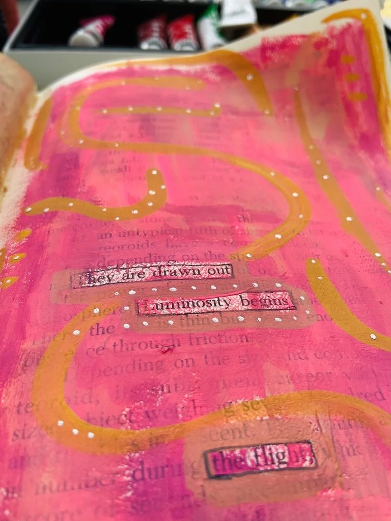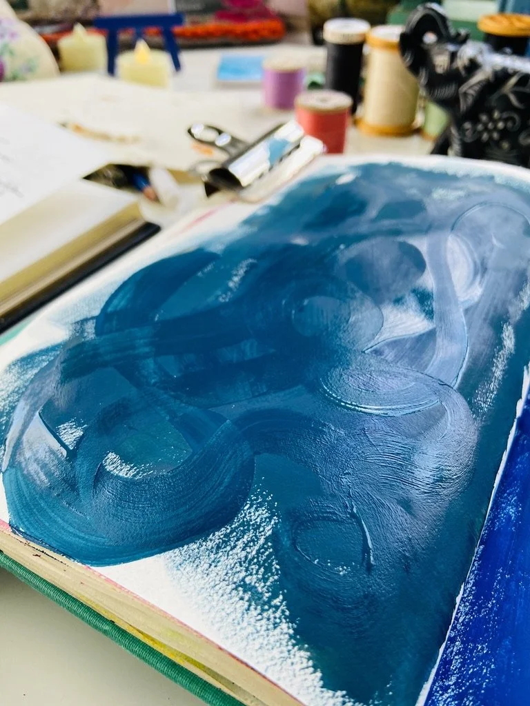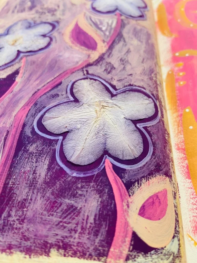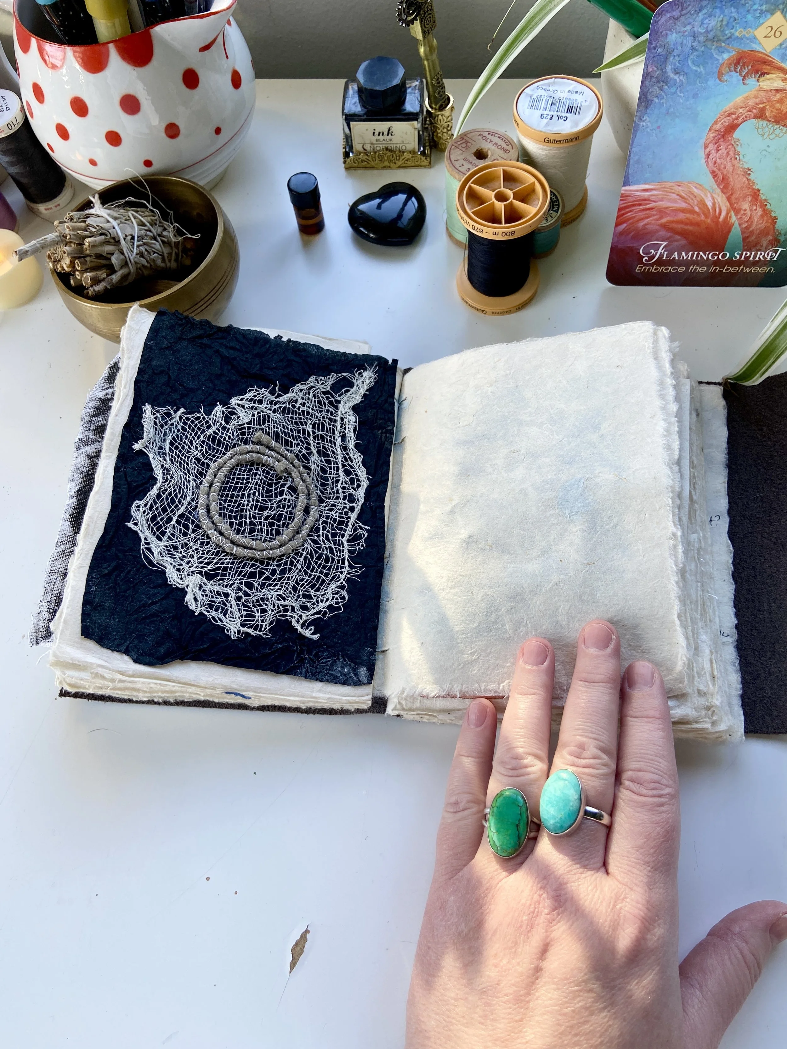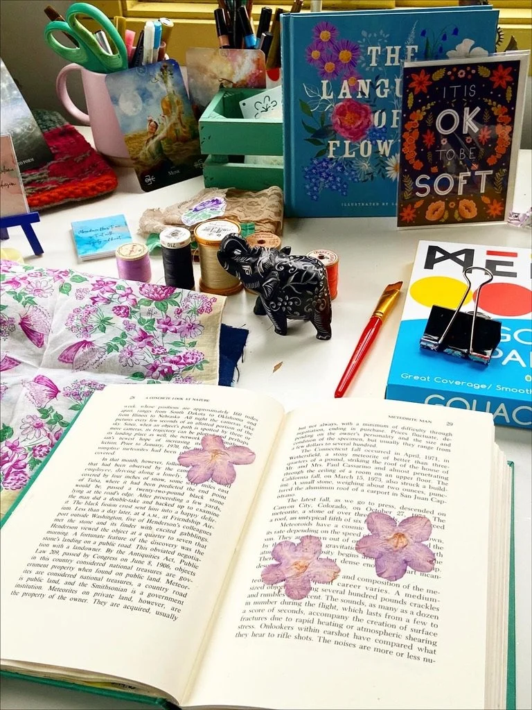 I have worked in art journals and sketchbooks for many years and have turned to them as a retreat, a sanctuary from the rest of the world and to process my emotions and navigate my life. They are a physical place where I can quietly go and ask questions, explore, feel, play, have slow and fascinating conversations, learn and experiment, work things through in my mind and heart and feel held and supported. They are an intimate space for just me to travel within. I have worked in vintage books I found at thrift stores, art store sketchbooks and hand bound books full of handmade Nepalese loktah papers. I hope you enjoy looking at some of the books I have filled with my heart.