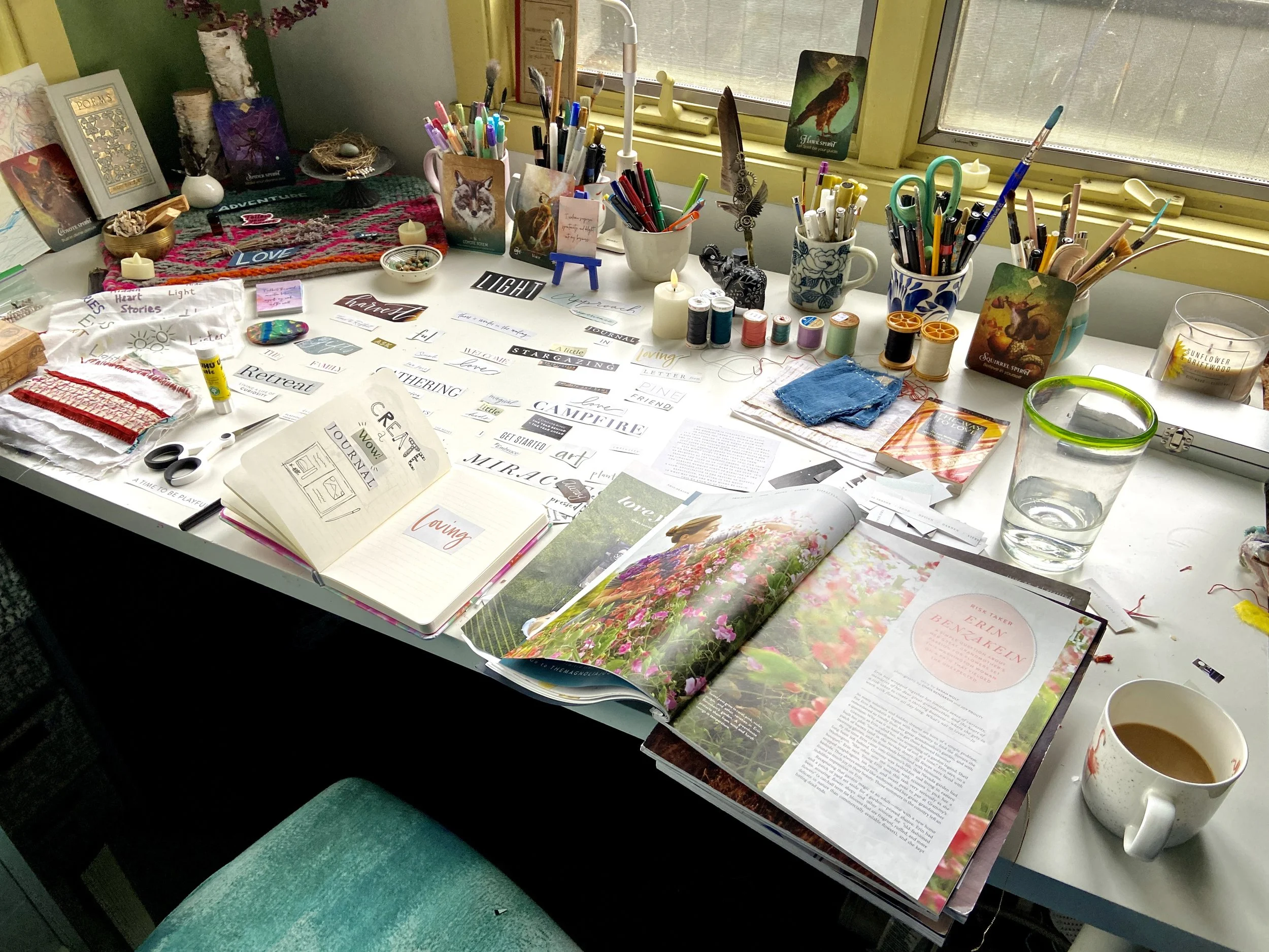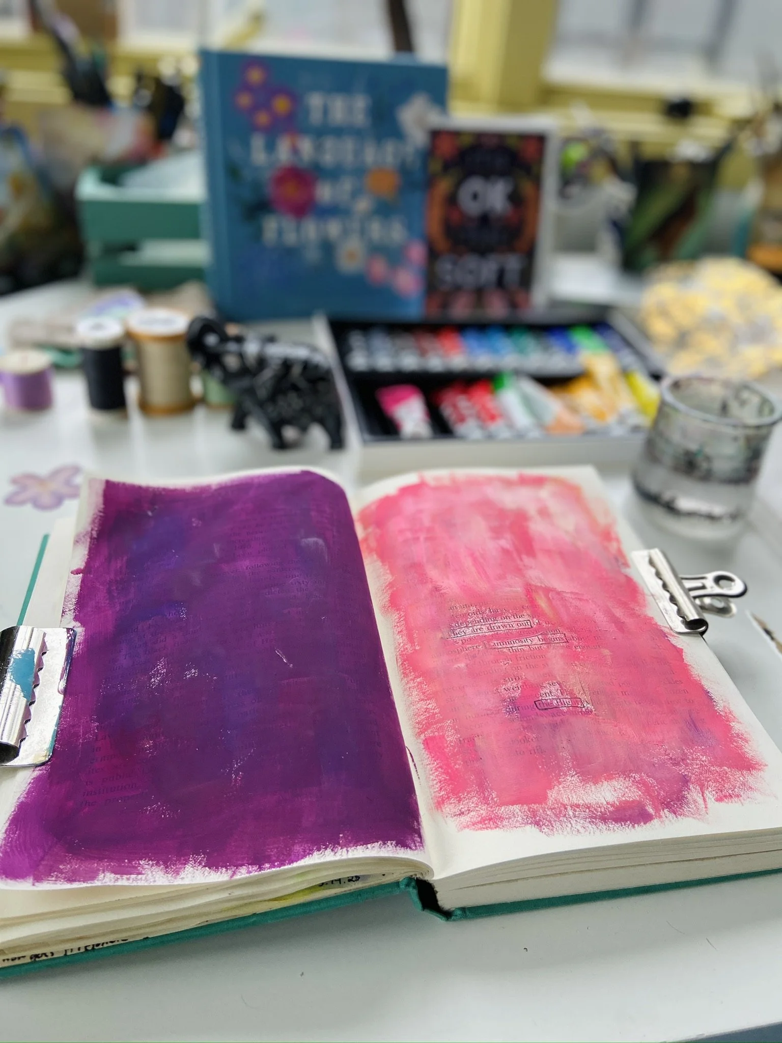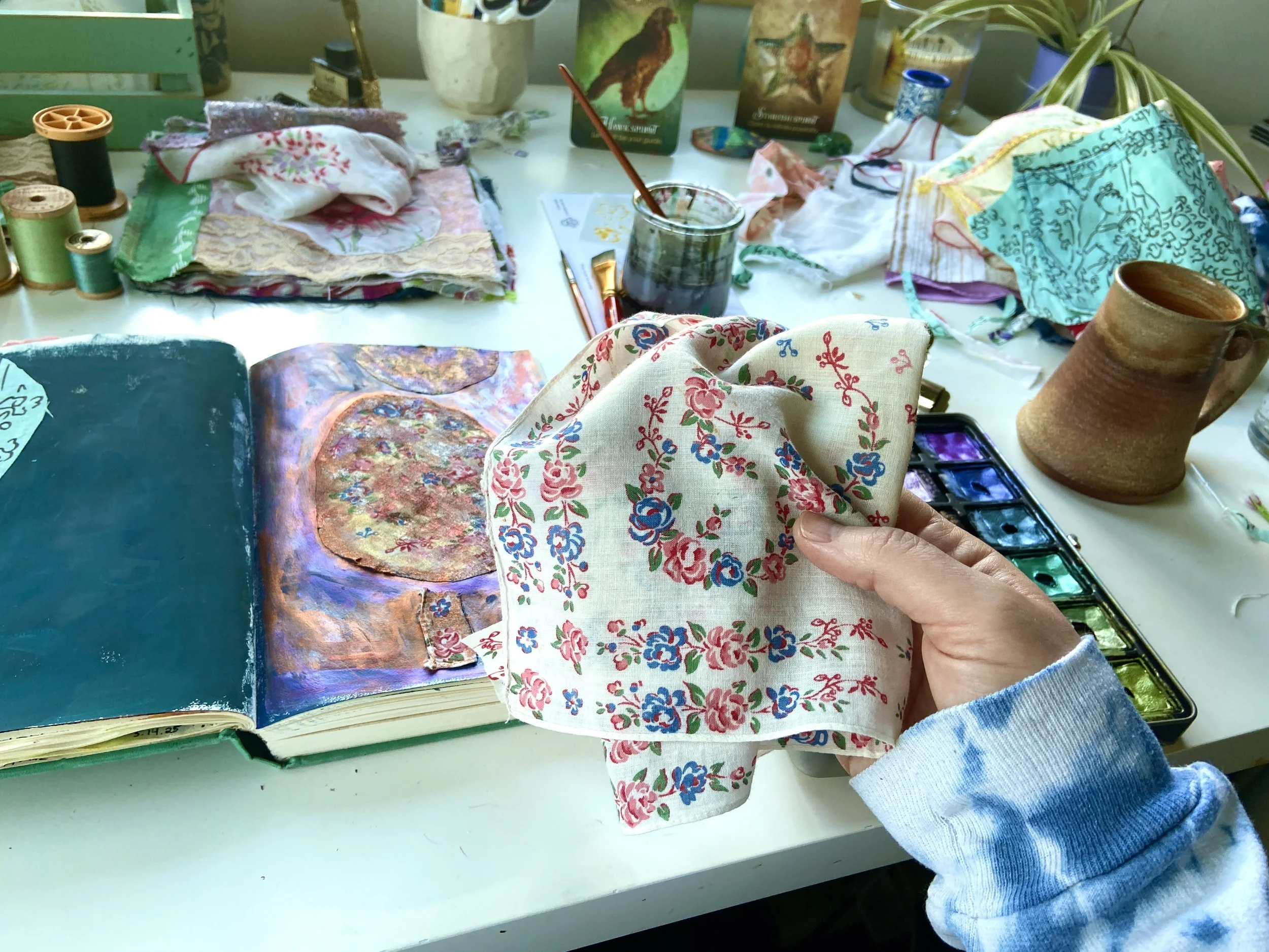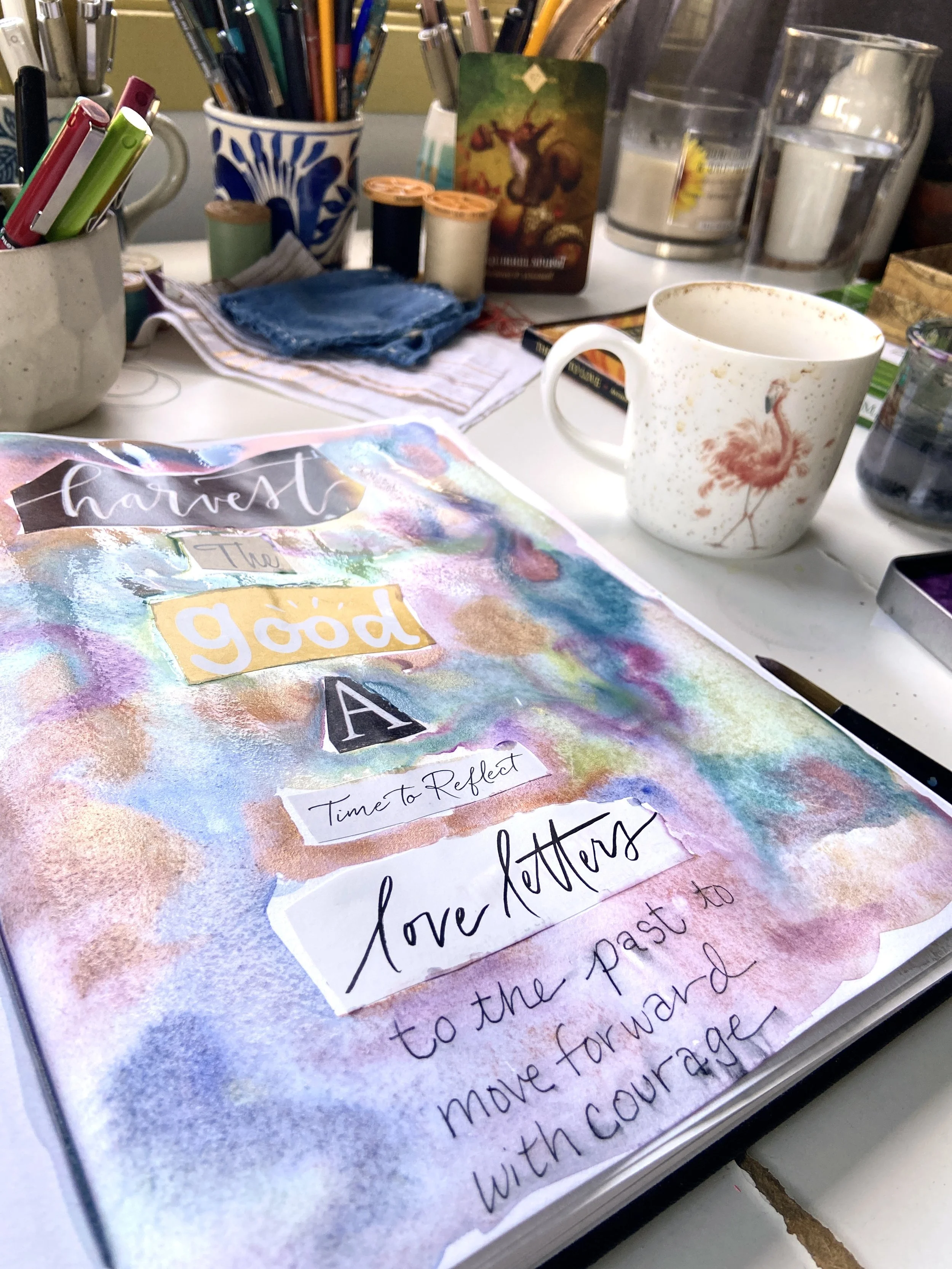 I have worked in art journals and sketchbooks for many years and have turned to them as a retreat, a sanctuary from the rest of the world and to process my emotions and navigate my life. They are a physical place where I can quietly go and ask questions, explore, feel, play, have slow and fascinating conversations, learn and experiment, work things through in my mind and heart and feel held and supported. They are an intimate space for just me to travel within. I have worked in vintage books I found at thrift stores, art store sketchbooks and hand bound books full of handmade Nepalese loktah papers. I hope you enjoy looking at some of the books I have filled with my heart.